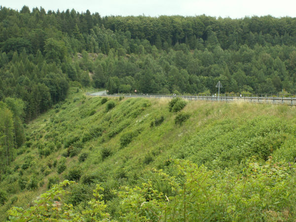 Ende des Dammes ist ein Parkplatz, von wo aus man Wanderungen unternehmen kann. Der Damm ist 45m hoch. Die Hochwasserentlastung ist ein trichterförmiger Überlaufturm, der in